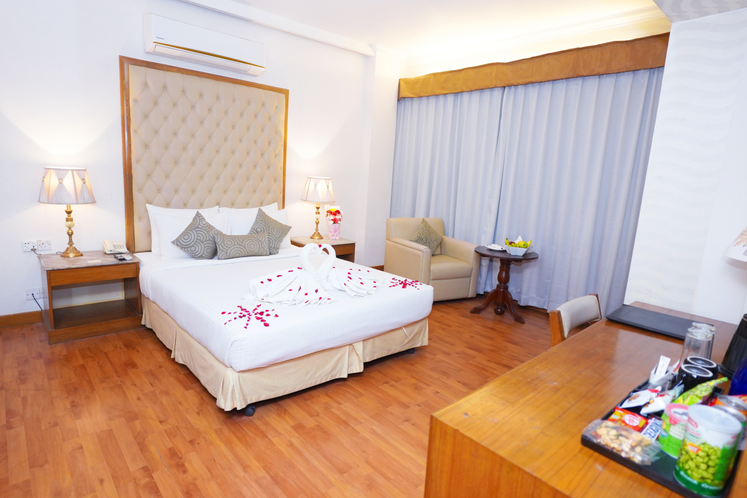 Our 40 guest rooms, tastefully furnished with modern architectural design Imperial Swiss Garden are one of the best hotels in the city of Dhaka. We offer Standard Rooms, Deluxe Rooms, Super Deluxe rooms, Suite rooms, Swiss Garden Suites and Family Suites. Our Bed is American style that length is 84’’ (213cm) long.